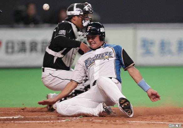 糸井の打席でパスボール 1塁ランナー陽2塁へ |