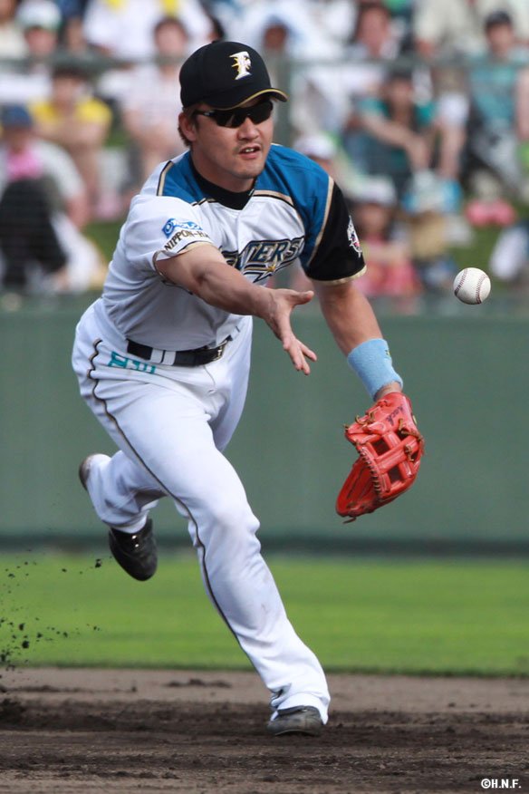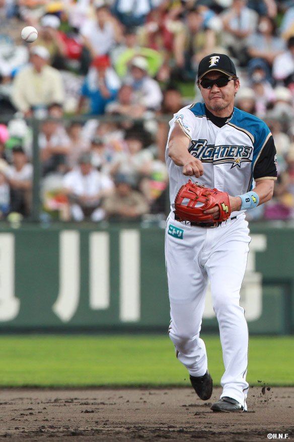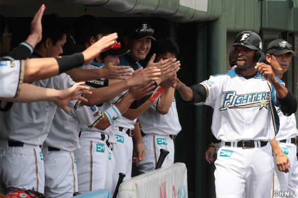 4番 中田 中犠飛 3塁ランナースケールズ生還 1-0 2塁ランナー糸井はタッチアップで3塁へ