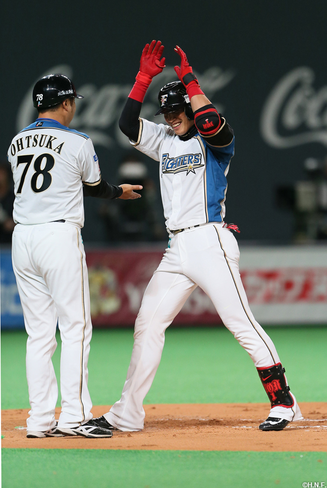 4番 中田 左中二 0アウト1,2塁からレフトへ2点タイムリーツーベース! 日8-4オ 2塁 ![]() 8