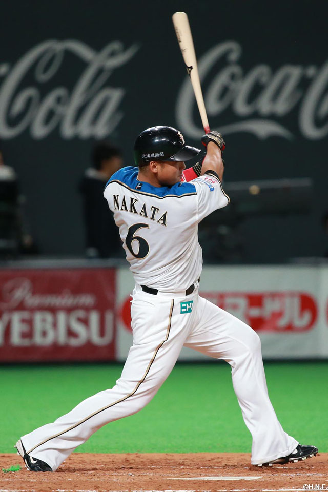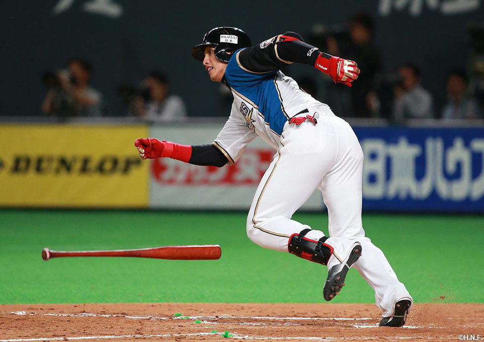 4番 中田 左安 ランナーフルベースの1-1からレフトへのタイムリーヒットで日本ハム同点! 日1-1西 満塁 ![]() 1