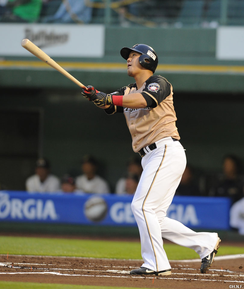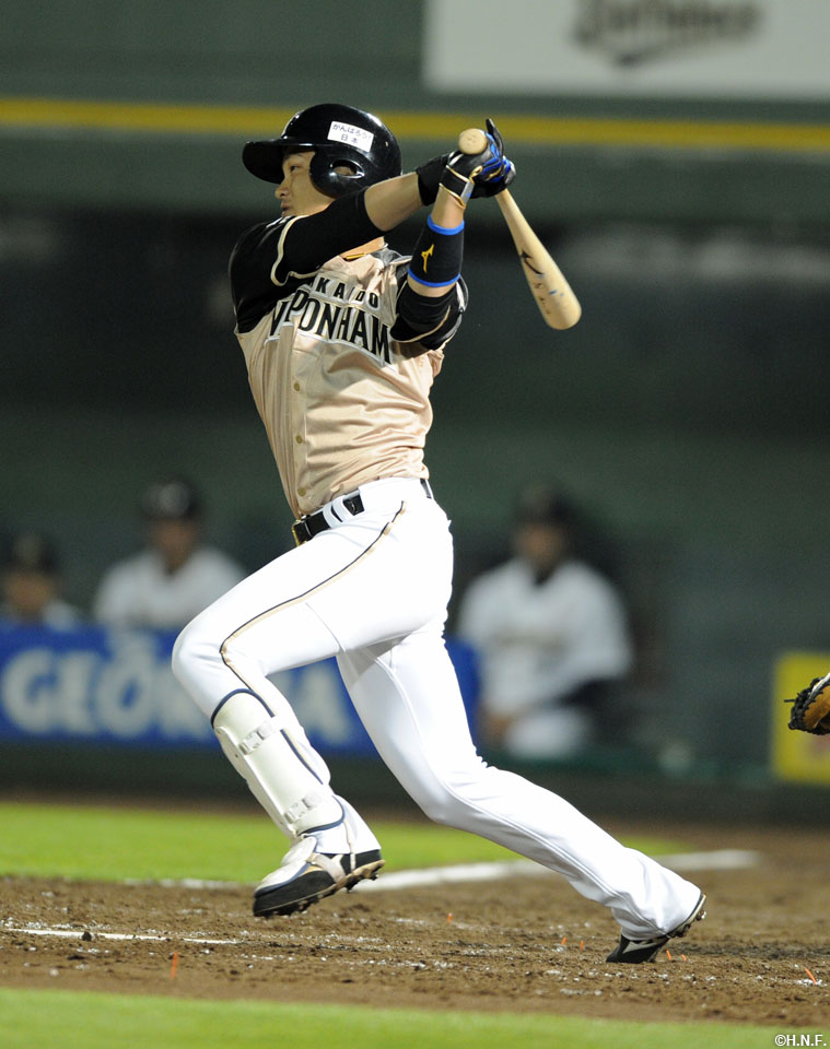 4番 中田 左本 2アウト2塁の2-0からレフトスタンドへの2ランホームランで日本ハム先制! オ0-2日 ![]() 0