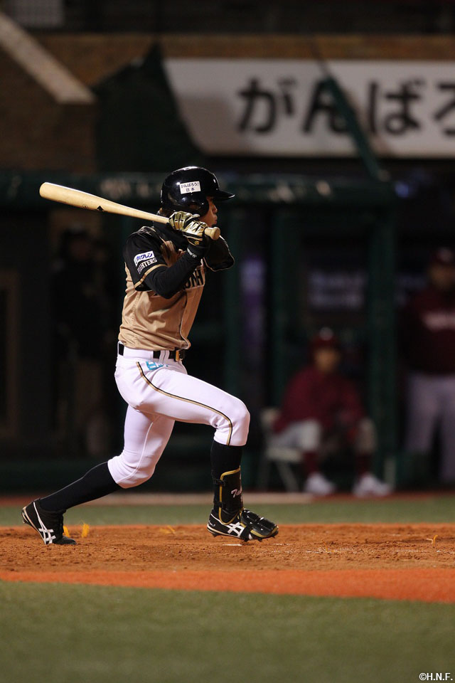 1番 岡島 右安 ランナー2,3塁の1-2からライトへのタイムリーヒット 楽8-0日 1,3塁 ![]() 8