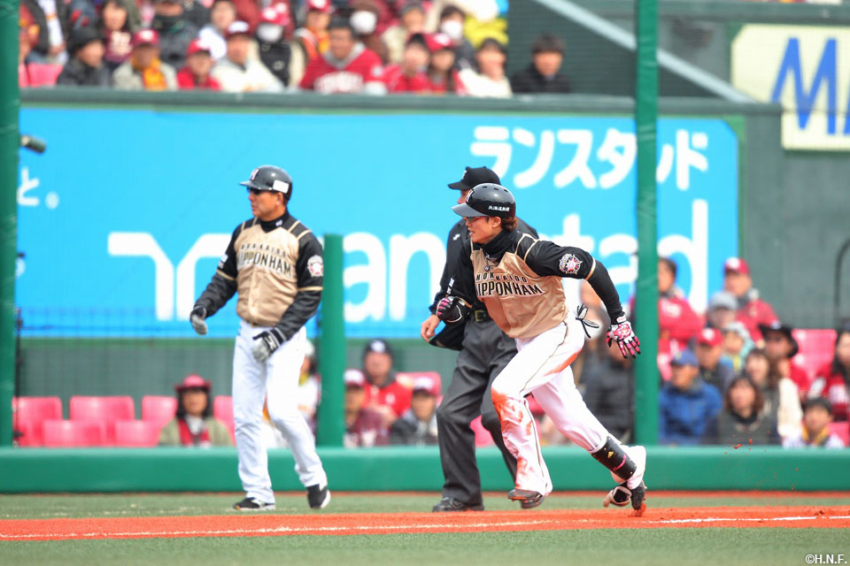 3番 陽 中安 センターへのヒットを放つ 1塁 |