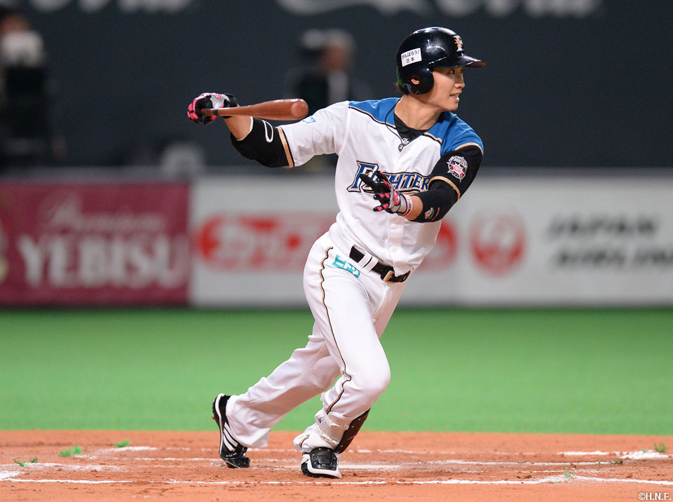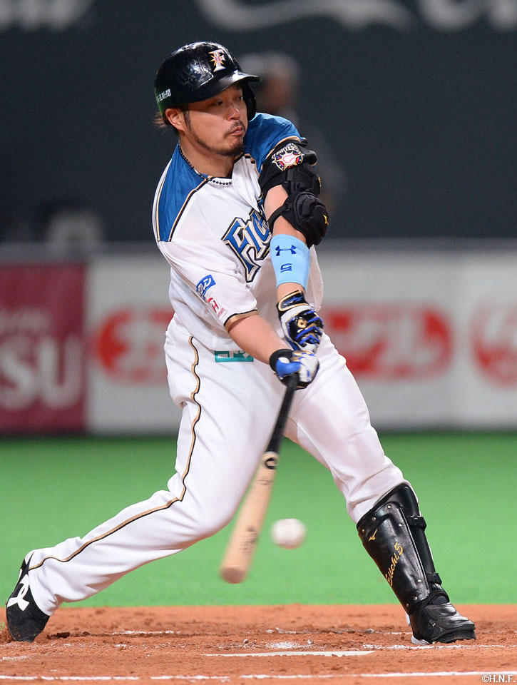 2番 西川 右中二 カウント1-0からセンターへのタイムリーツーベースで日本ハム同点 日1-1ロ 2塁 ![]() 1