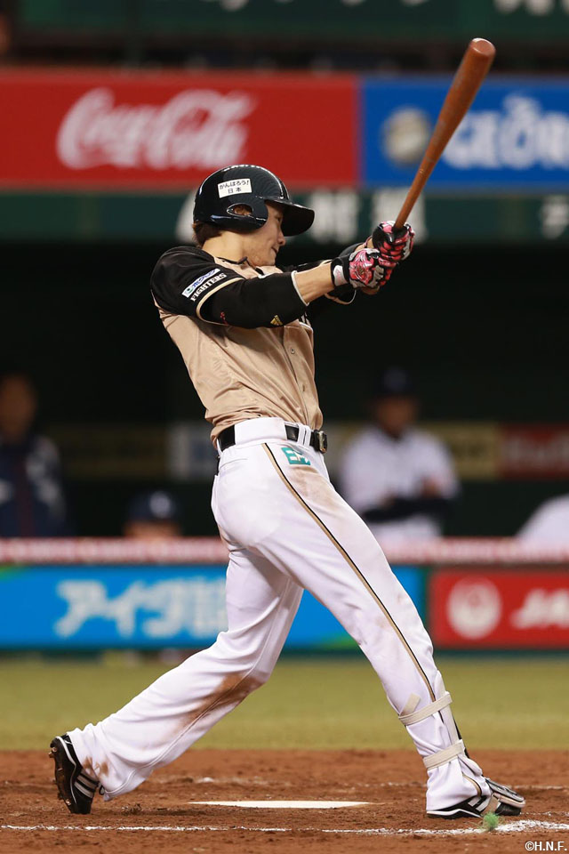 1番 渡辺直 中安 2アウト2塁の1-2からセンターへのタイムリーヒット 西2-0日 1塁 ![]() 2