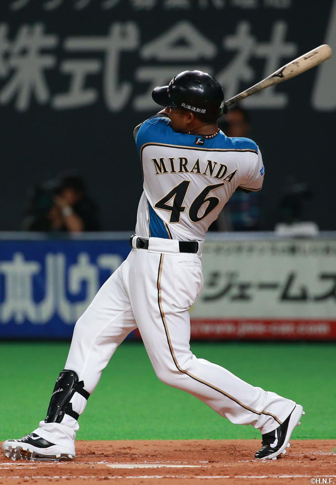 6番 ミランダ 右安 ランナー3塁の2-1からライトへのタイムリーヒット 日3-0オ 1塁 ![]() 3