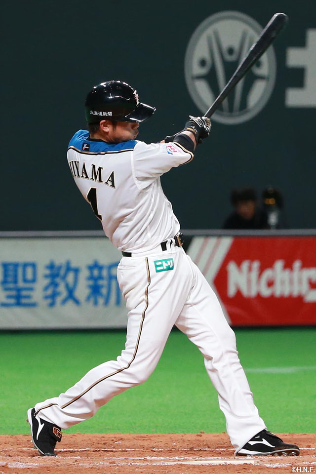 9番 中島卓 二ゴ セカンドゴロの間に日本ハム1点をあげる 日11-1ロ 1アウト1,3塁 ![]() 11