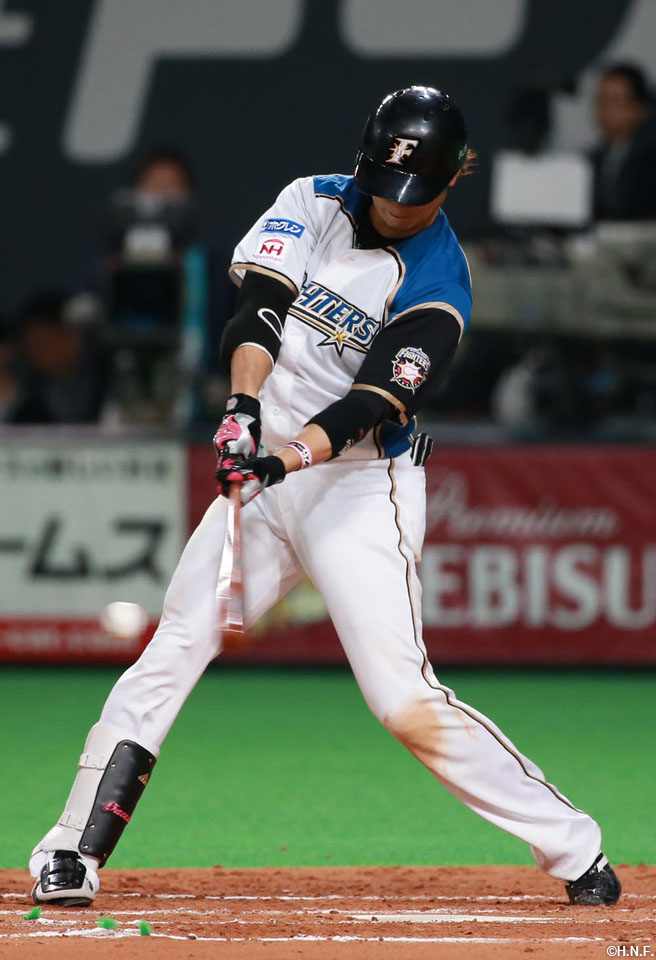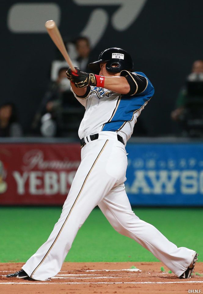4番 中田 中安 センターへのヒットで出塁 1塁 |