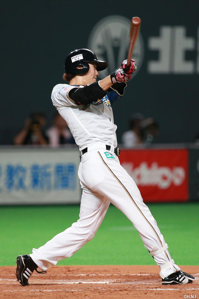 投手 大野 4番 中田 中安 センターへのヒットを放つ 1塁 |