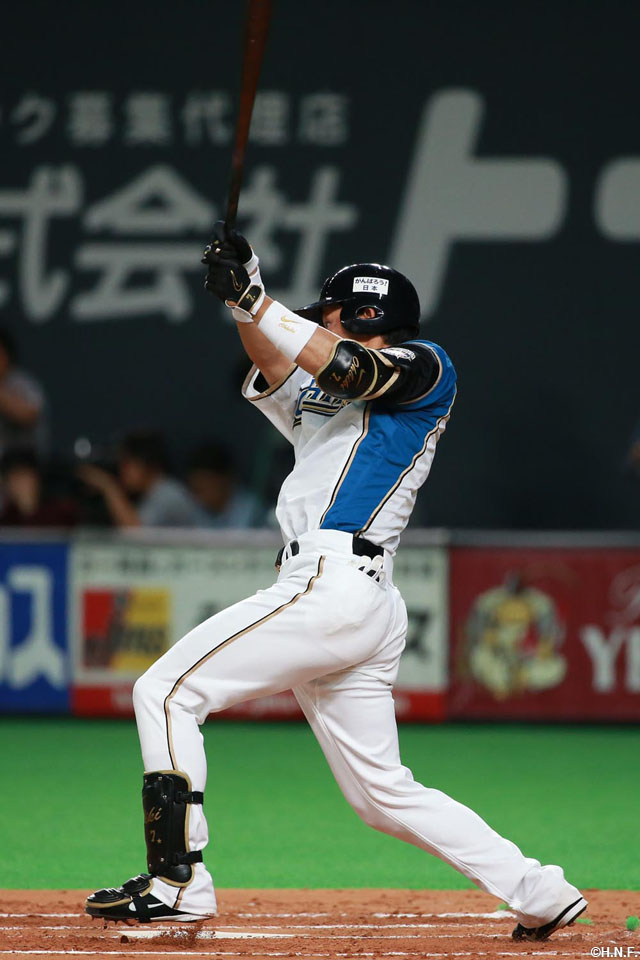 投手 上沢 6番 バルディリス 右翼二 ライトへの二塁打 2塁 |
