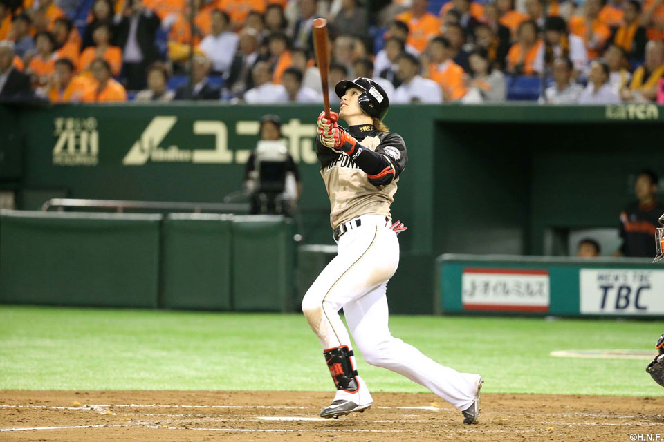 3番 陽 中安 ランナー3塁の2-2からセンターへのタイムリーヒット 巨3-2日 1塁 ![]() 3