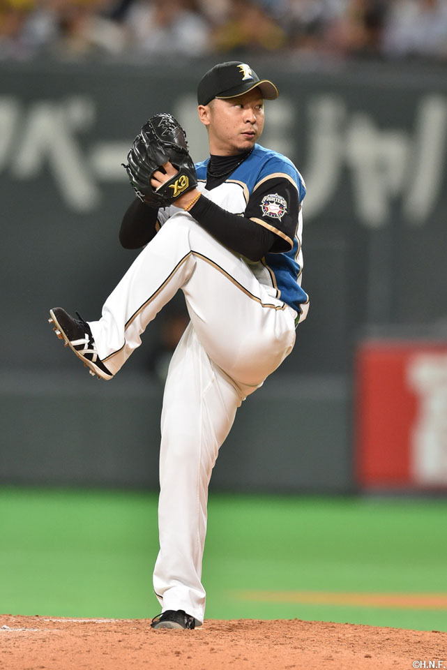 投手 呉昇桓 4番 中田 空三振 高めのボール球につられて空振り三振 1アウト |