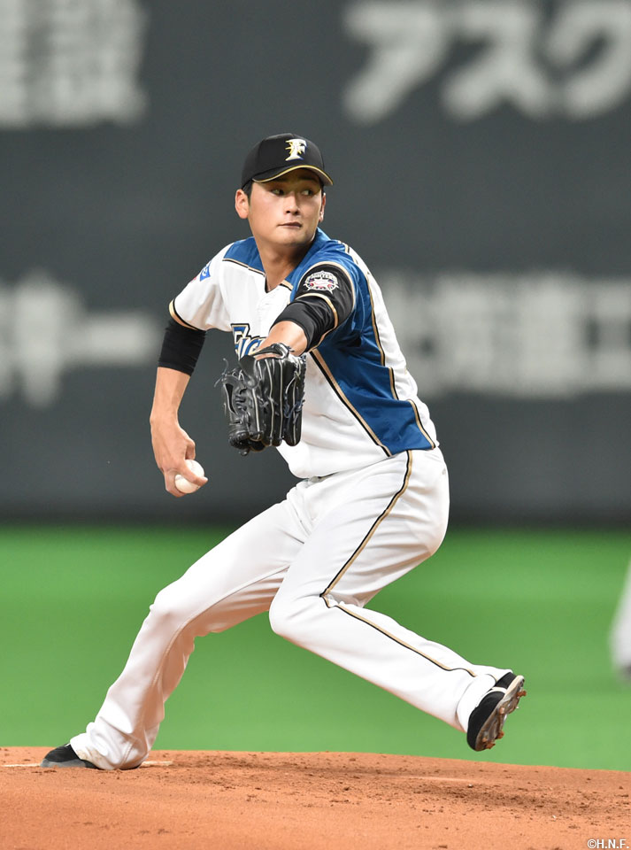 投手 谷元 9番 中東 左邪飛 ファウルフライを中田(左)が捕球してバッターアウト 1アウト |