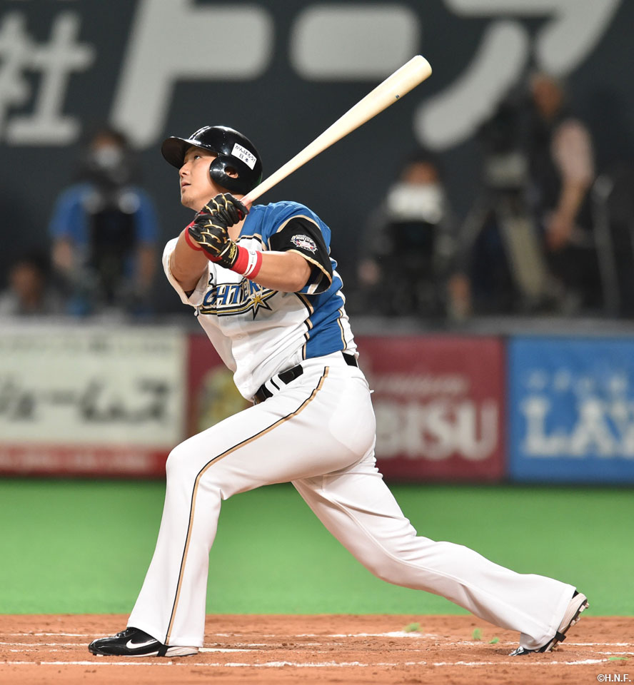 3番 陽 中安 2アウト1,3塁の1-1からセンターへのタイムリーヒットで日本ハム同点! 日2-2広 1,2塁 ![]() 2