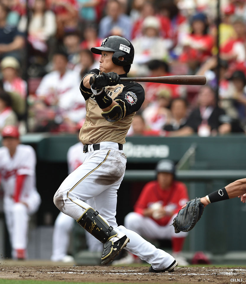 5番 ミランダ 中安 1アウト2塁からセンターへのタイムリーヒットで日本ハム同点! 広3-3日 1塁 ![]() 3