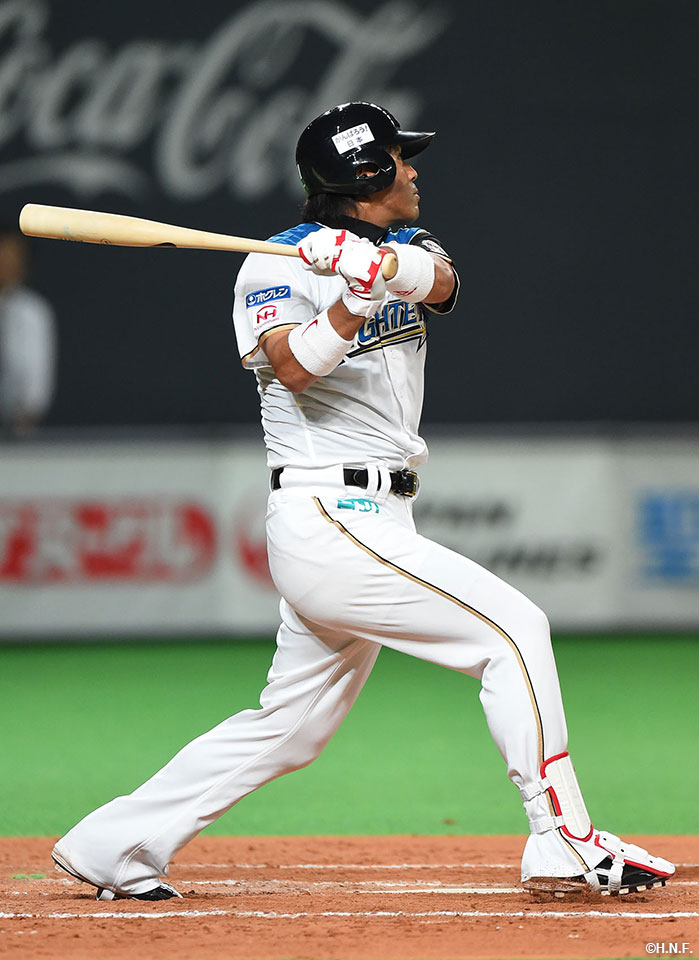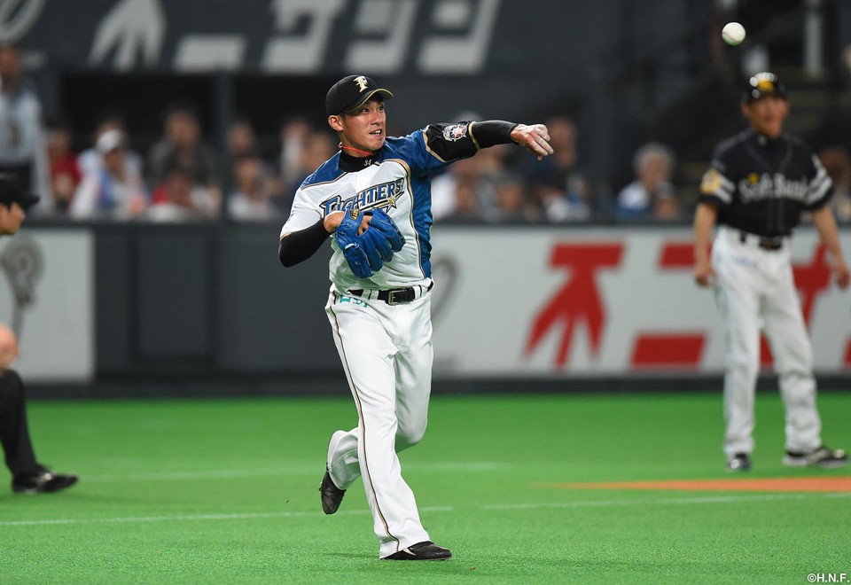 6番 大引 左安 ランナー1,2塁の1-2からレフトへのタイムリーヒットで日本ハム同点! 日2-2ソ 1,2塁 ![]() 2