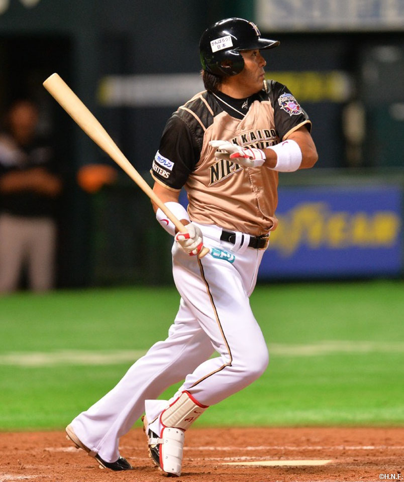 4番 中田 中越二 1アウト1,3塁の2-2からセンターへタイムリーツーベース! ソ3-1日 2,3塁 ![]() 2