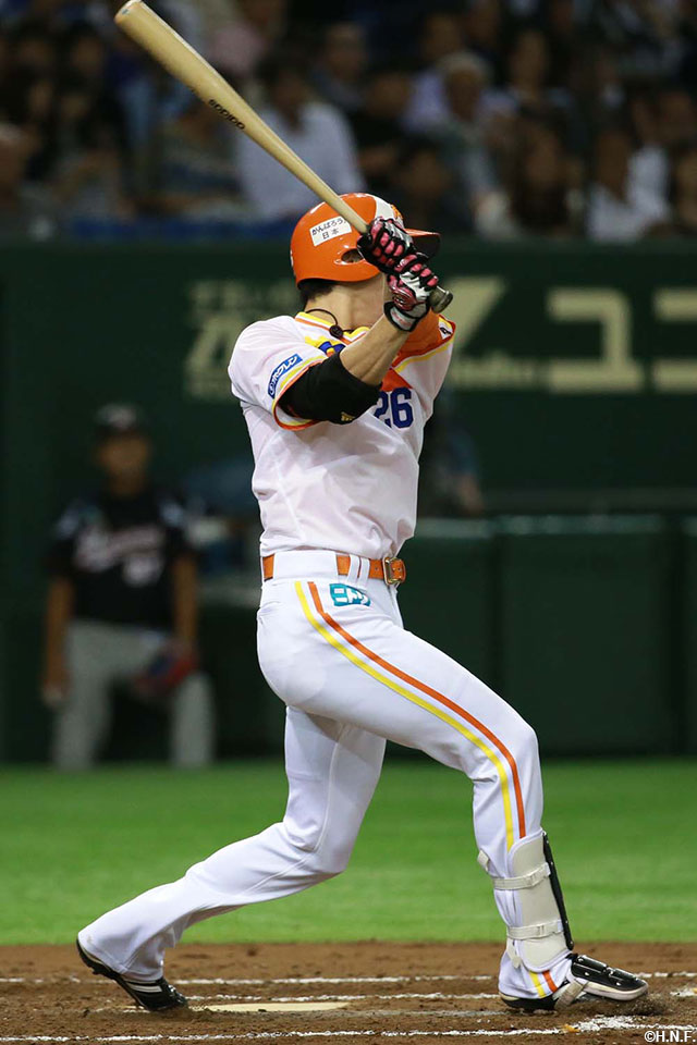 4番 中田 左翼二 ランナー3塁の1-0からレフトへのタイムリーツーベースで日本ハム先制! 日1-0ロ 2塁 ![]() 1