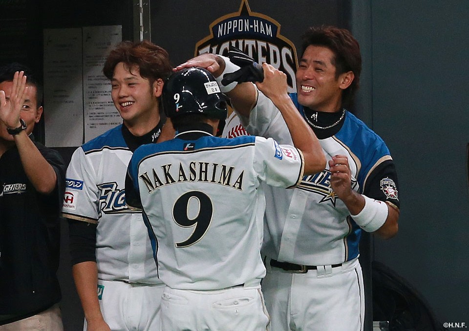 2番 中島卓 左中三 1アウト2塁の2-0からセンターへの勝ち越しタイムリースリーベース! 日3-2楽 3塁 ![]() 3