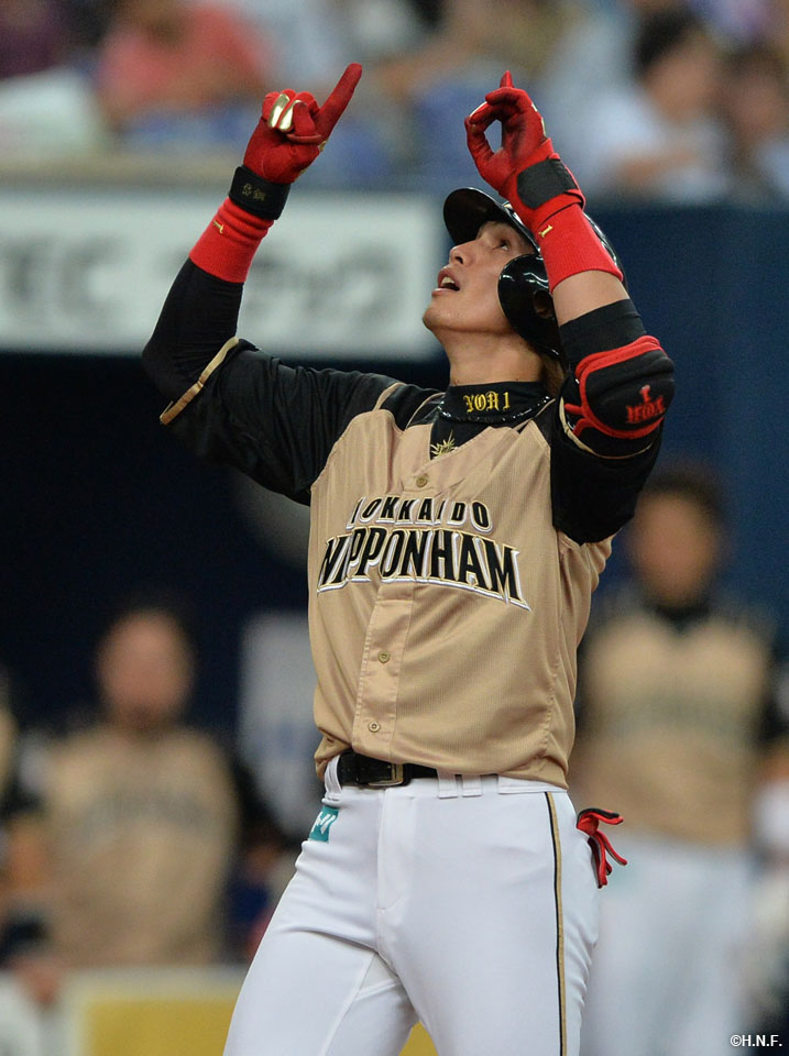 投手 上沢 1番 ヘルマン 遊ゴ 低めのフォークボールを打つもショートゴロ 1アウト |
