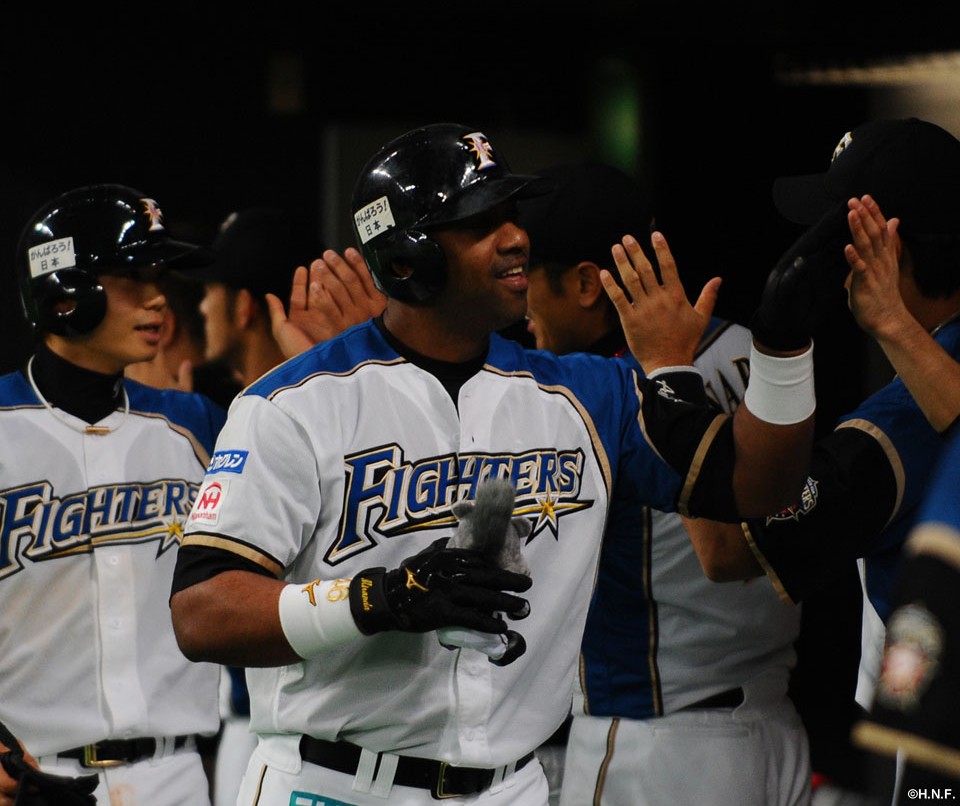 5番 ミランダ 右本 2アウト1,2塁の1-1からライトスタンドへの3ランホームランで日本ハム先制! 日3-0オ ![]() 3