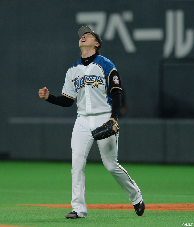 ゲームセットの瞬間の上沢選手