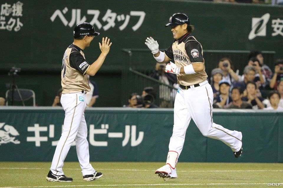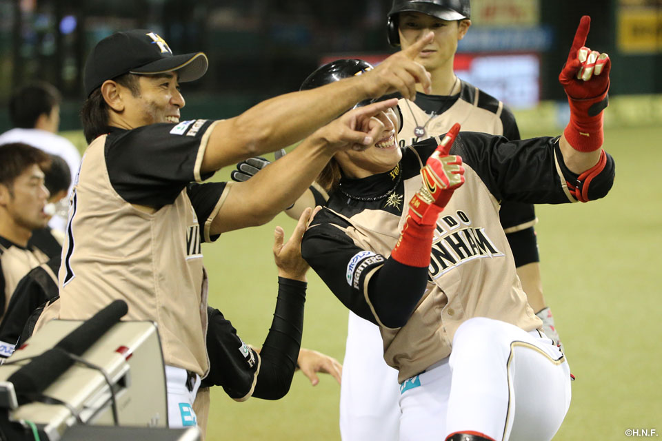 3番 陽 左本 ランナー2塁の3-1からレフトスタンドへの2ランホームランで日本ハム先制! 西0-2日 ![]() 0
