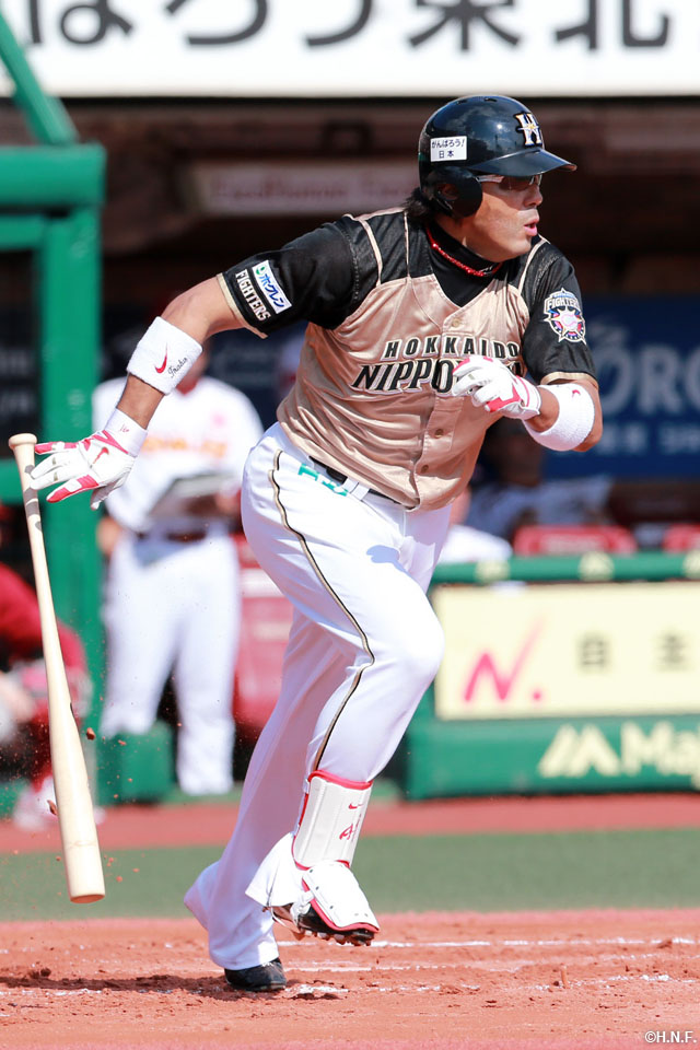 9番 哲朗 中安 ランナー2,3塁の0-1からセンターへの逆転タイムリーヒット! 楽2-1日 1塁 ![]() 2