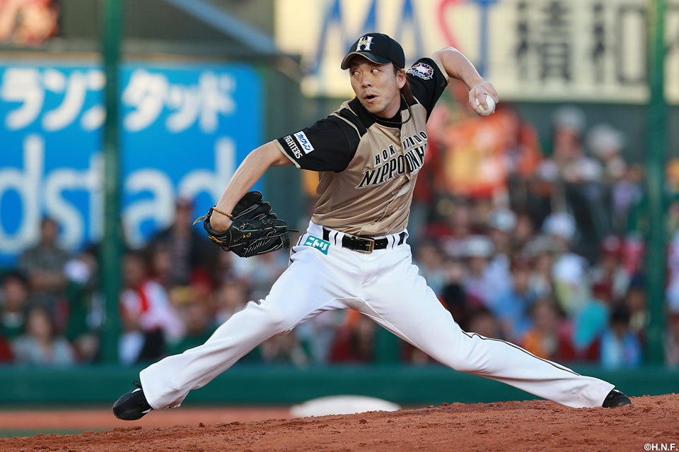 投手 福山 2番 中島卓 中安 ランナー2,3塁の3-2からセンターへのタイムリーヒットで日本ハム勝ち越し! 楽10-12日 1塁 ![]() 9