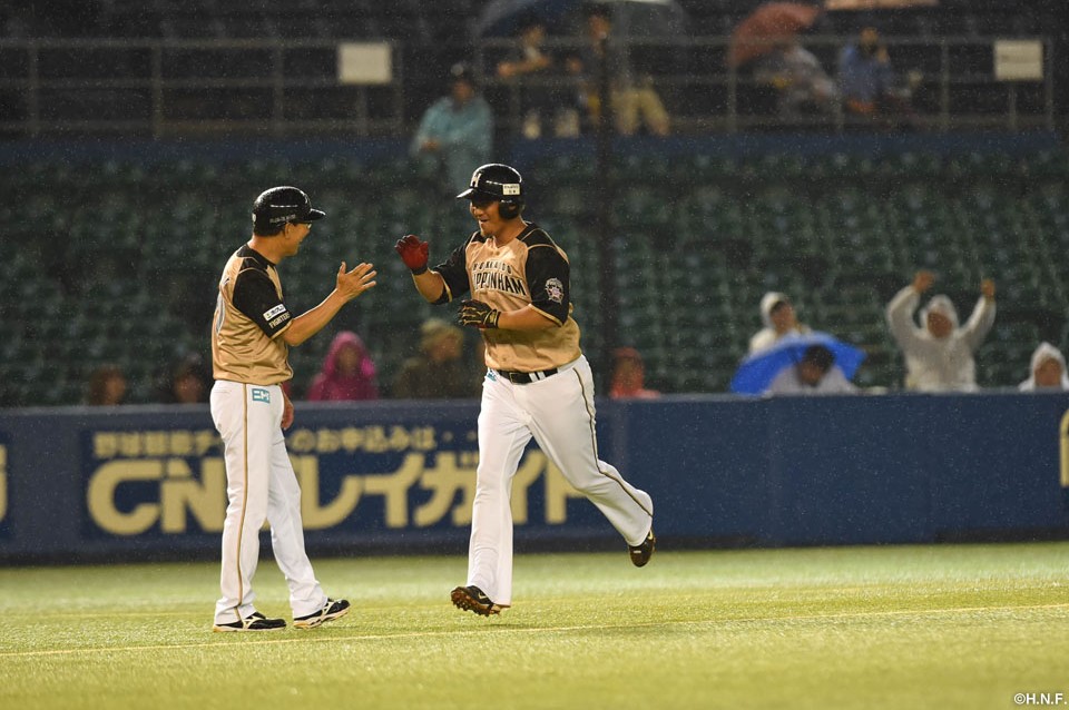 4番 中田 左本 カウント2-2からレフトスタンドへの2ランホームランで日本ハム先制! ロ0-2日 ![]() 0