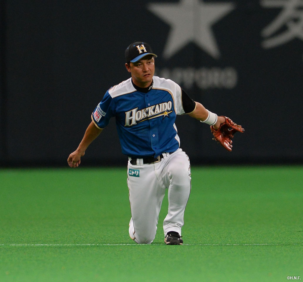 4番 中田 一邪飛 ファウルフライを李大浩(一)がつかんでバッターアウト 3アウトチェンジ |