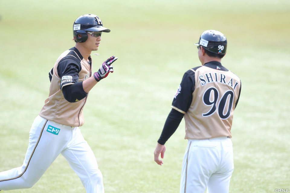 投手 上沢 7番 根元 中安 センターへのヒット 1塁 |