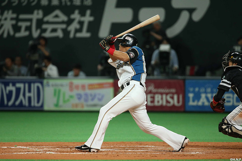 4番 中田 右本 ランナー1,3塁の3-2からライトスタンドへの3ランホームラン 日9-2ソ ![]() 9