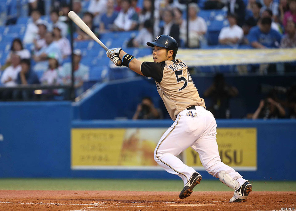 投手 新垣 5番 近藤 左本 レフトスタンドへのホームランで日本ハム同点! ヤ1-1日 ![]() 1