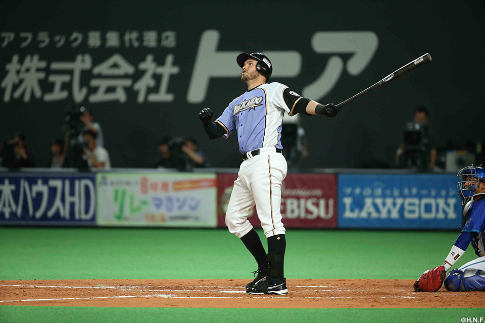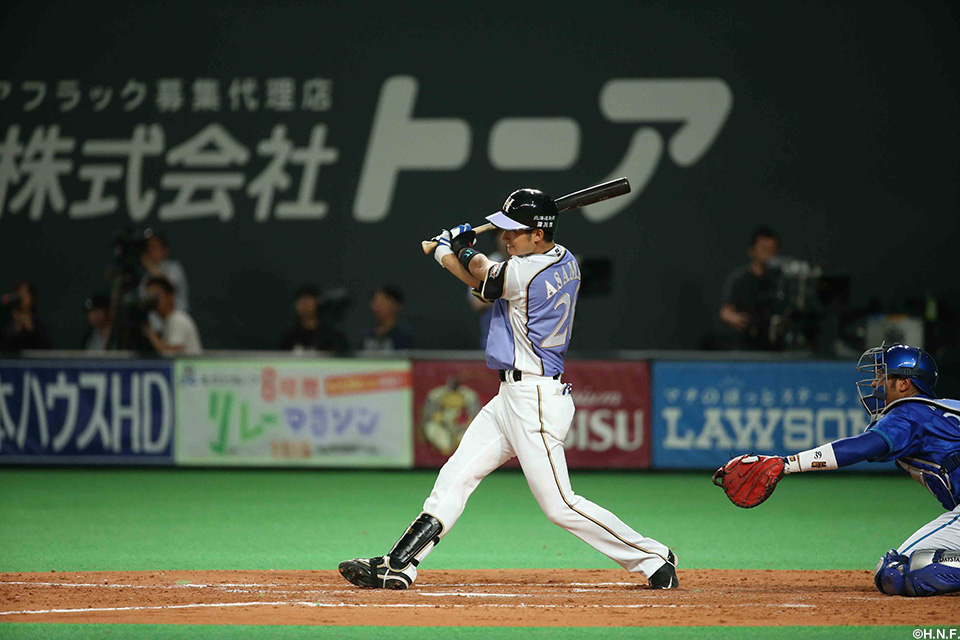 8番 レアード 左安 2アウト1,2塁からレフトへのヒットで出塁 |