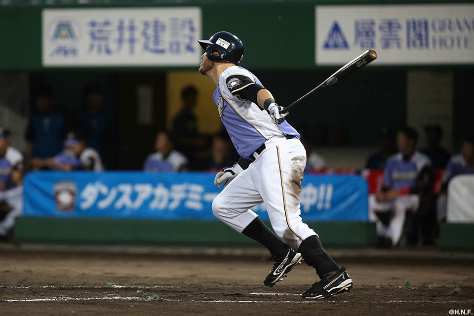 4番 中田 左本 2アウト2,3塁の3-1からスタンド中段に飛び込む3ランホームランを放つ 日4-0ロ ![]() 4