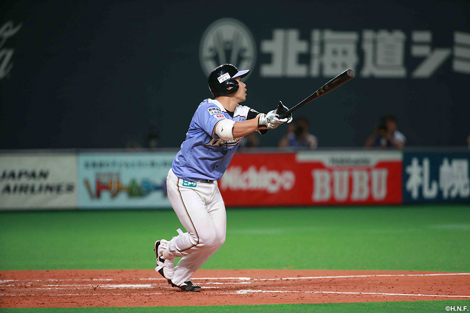 投手 増井 1番 秋山 左安 レフトへのヒットを放つ 1塁 |