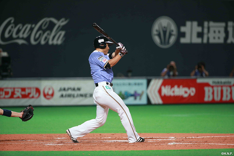3番 田中賢 右安 ランナー1,3塁の0-1からライトへのタイムリーヒットで日本ハム勝ち越し! 日6-5西 1,3塁 ![]() 6