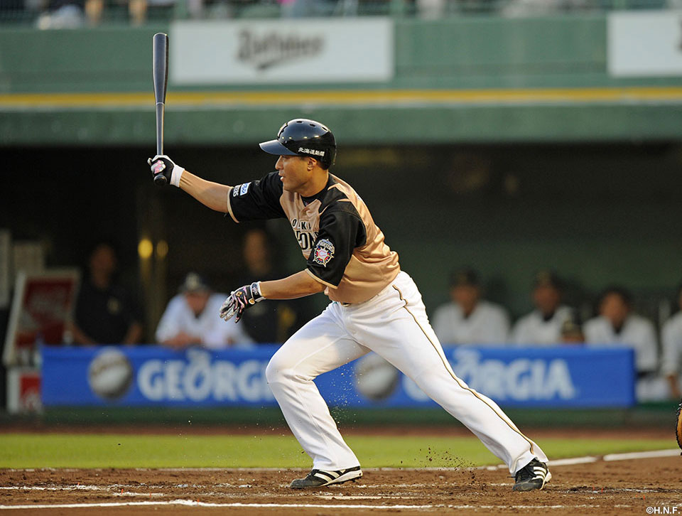 6番 レアード 左本 ランナー2,3塁の2-1からスタンド上段に飛び込む3ランホームランを放つ オ0-8日 ![]() 0