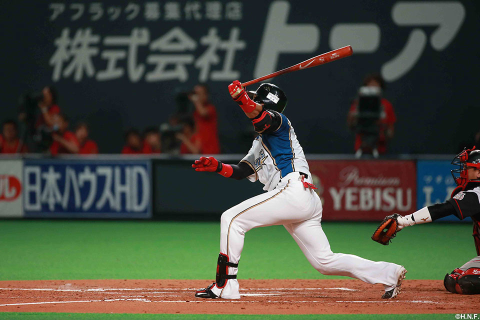 4番 中田 四球 外角の変化球を見送りフォアボール。ロッテ、満塁のピンチをまねく 満塁 |