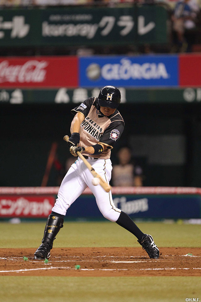 4番 中田 中安 ランナー1,2塁の1-0からセンターへのタイムリーヒット 西1-3日 1,3塁 ![]() 1