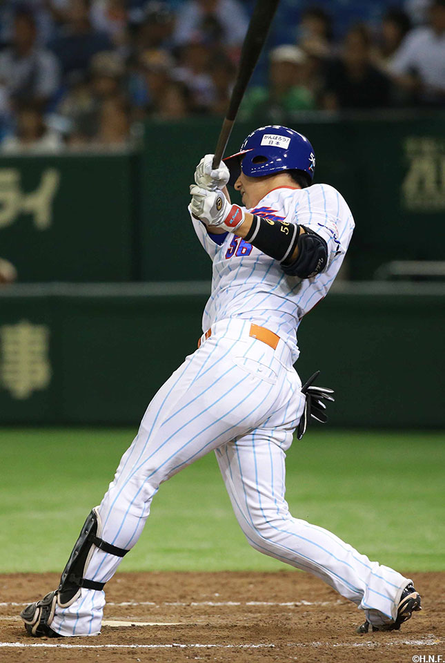 2番 中島卓 左安 レフトへのヒットを放つ 1塁 |
