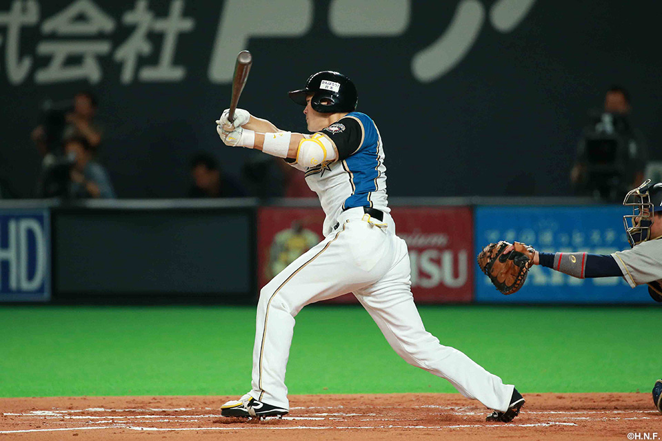 1番 陽 左安 1アウト2,3塁の1-1からレフトへのタイムリーヒット 日8-3オ 1塁 ![]() 8