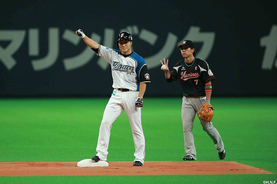 5番 福浦 右中二 ライトへのツーベース 2塁 |