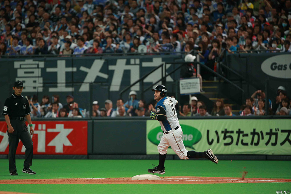 3番 清田 左本 カウント3-0からレフトスタンドへのホームラン 日3-9ロ ![]() 2