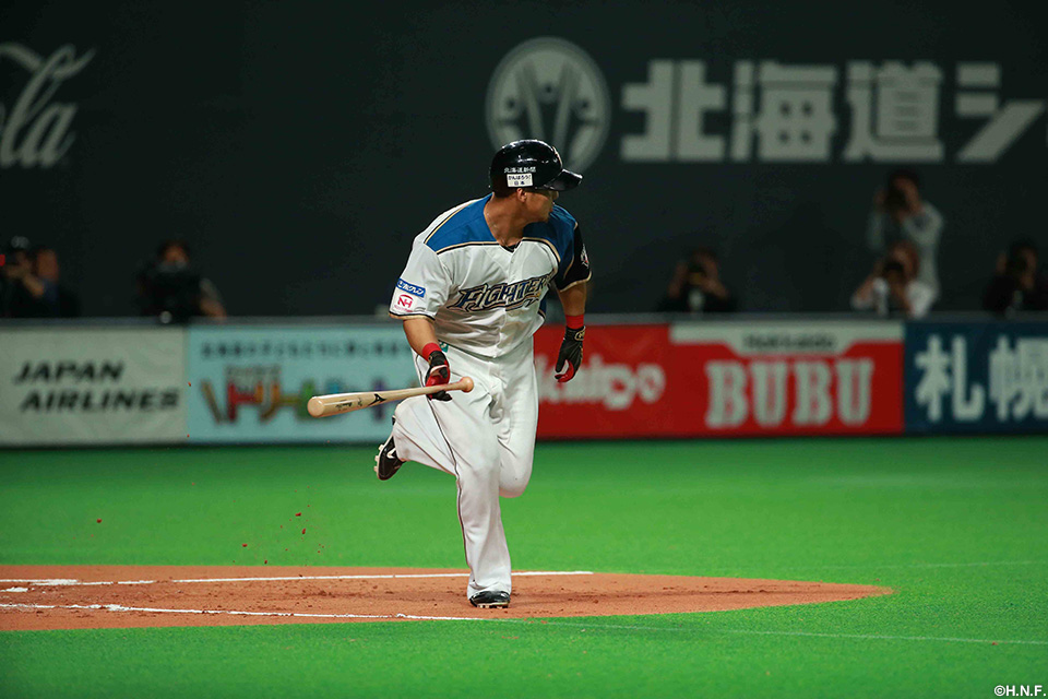 6番 レアード 右安 ライトへのヒットを放つ 1,3塁 |