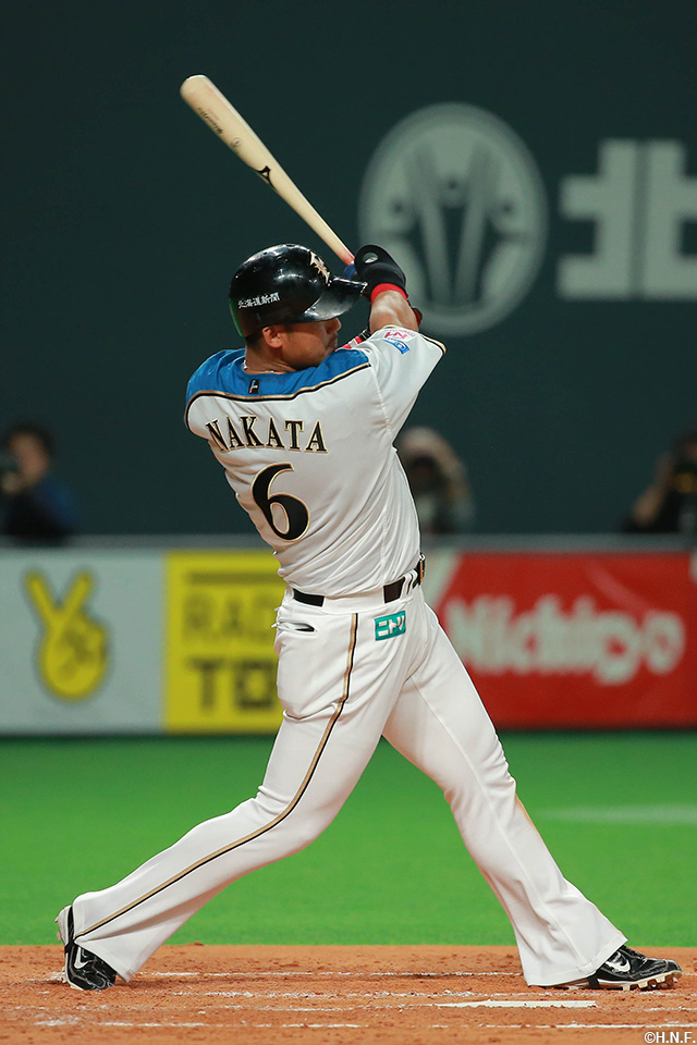 4番 中田 四球 外角の落ちる球を見送りフォアボール。ロッテ、満塁のピンチをまねく 満塁 |