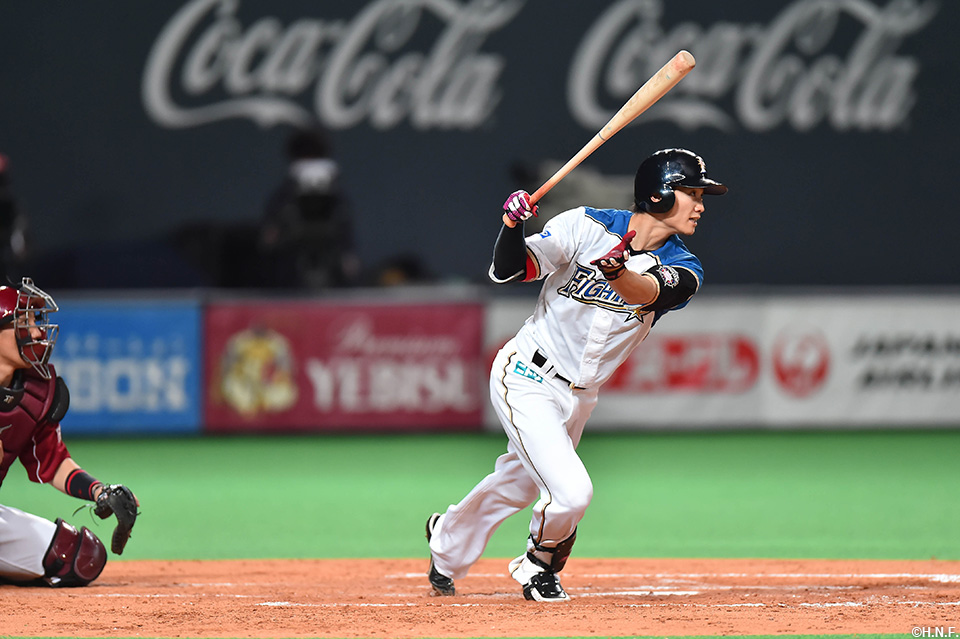 9番 西川 右中三 カウント1-2からライトへのタイムリースリーベースで日本ハム勝ち越し! 日2-1楽 3塁 ![]() 2