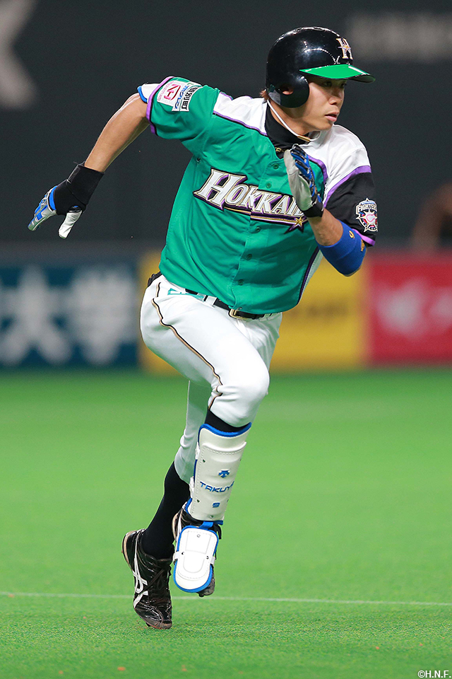 2番 聖澤 左安 レフトへのヒットを放つ 1塁 |