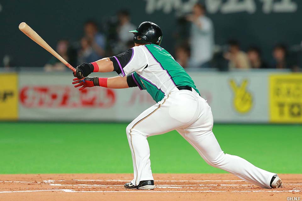 6番 レアード 左安 レフトへのヒットを放つ 1塁 |